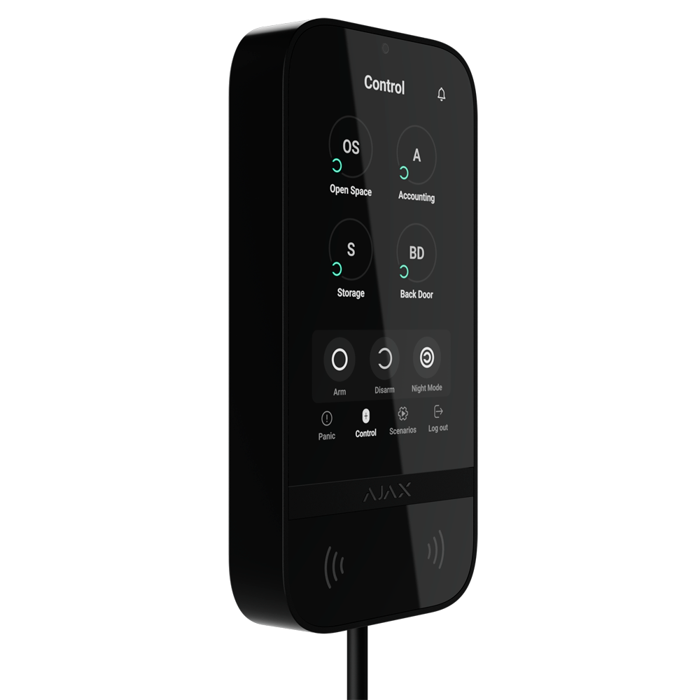 • Teclado cableado con pantalla IPS táctil y lector RFID de tarjetas/tags Ajax