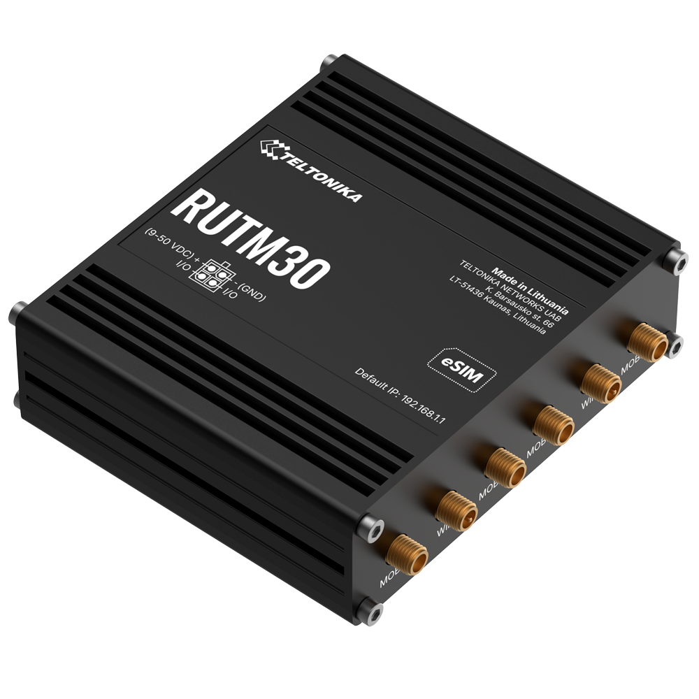 El Teltonika RUTM30 es un router 5G industrial robusto, seguro y polivalente, perfecto para aplicaciones que requieren velocidad avanzada, conectividad redundante, gestión remota y resistencia en entornos industriales. Incluye conectividad 5G Sub-6GHz (compatible con 4G/3G), doble SIM física y eSIM con conmutación automática, y Wi-Fi 5 de doble banda para alta capacidad. Su bajo consumo, compatibilidad con PoE pasivo y su amplio rango de alimentación lo posicionan como una solución eficiente en despliegues críticos de IoT, videovigilancia o automatización.