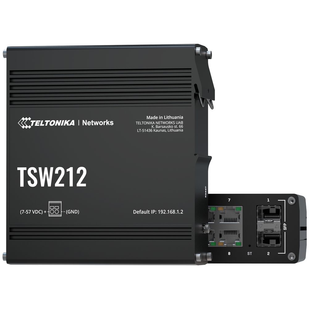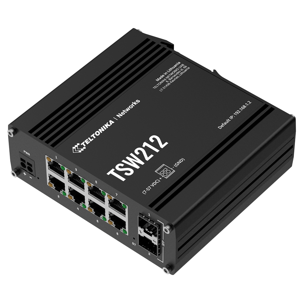 Switch Ethernet | Gestionable | Puertos RJ45: 8 | Velocidad: Gigabit | PoE: No | Uplink: SFP | Marca: Teltonika | Ref.: TK-TSW212