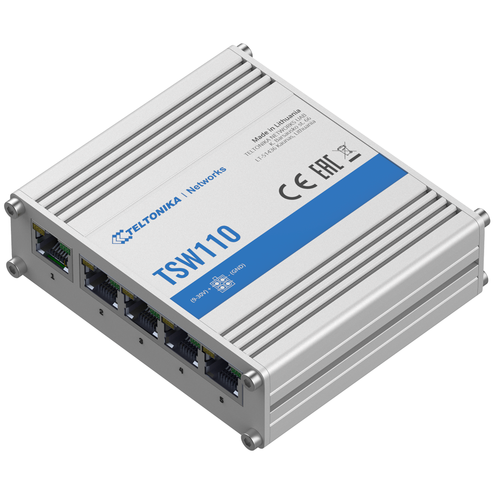 Switch Ethernet | No Gestionable | Puertos RJ45: 5 | Velocidad: Gigabit | PoE: No | Marca: Teltonika | Ref.: TK-TSW110
