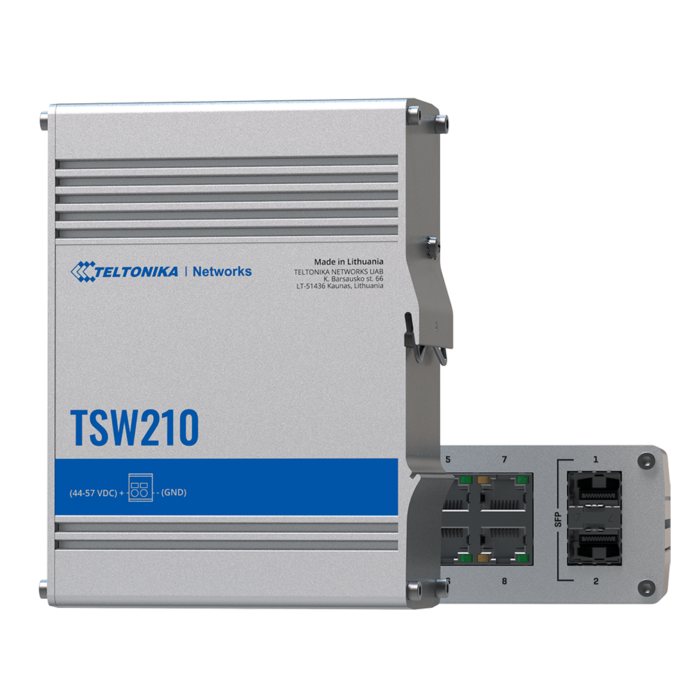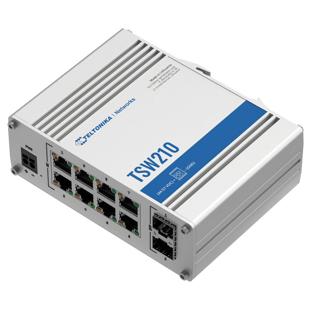 Switch Ethernet | No Gestionable | Puertos RJ45: 8 | Velocidad: Gigabit | PoE: No | Uplink: SFP | Marca: Teltonika | Ref.: TK-TSW210