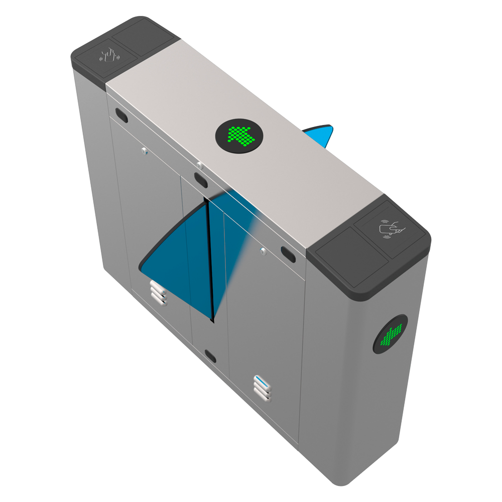 Torno de control de acceso | Tipo: Torno | Sentido: Bidireccional | Accionamiento: Automático | Ancho paso: 550 mm | Material: Acero inoxidable + acrílico | Indicador LED | Modo emergencia | Compatible con control de acceso de terceros | Marca: Turboo | Ref.: TS-FB701-M