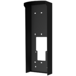 La instalación en superficie permite una integración limpia en fachadas, muros de entrada y pilares de acceso donde el videoportero requiere protección adicional sin necesidad de empotrar la unidad. El diseño en voladizo de la visera crea un efecto de alero que desvía eficazmente el agua de lluvia, evitando que impacte directamente sobre la pantalla, los botones y los componentes electrónicos sensibles del dispositivo.