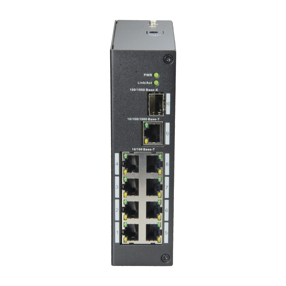 - Switch Industrial- 8 puertos RJ45 10/100 Mbps + 1 RJ45 10/100/1000 Mbps uplink + 1 puerto SFP Gigabit uplink