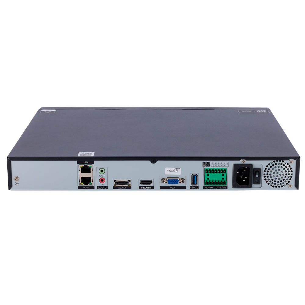 - Hasta 16 canales IP que llegan a 8 canales IP con 8 canales de análisis de vídeo