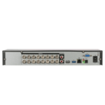 Grabador XVR de 16 canales con tecnología 5 en 1 que soporta cámaras HDTVI, HDCVI, AHD, CVBS y hasta 16 canales IP adicionales. Incorpora funciones avanzadas de inteligencia artificial con reconocimiento facial, compresión H.265+ para optimizar almacenamiento y salida de vídeo 4K. Diseñado para instalaciones profesionales de videovigilancia que requieren máxima compatibilidad y rendimiento.